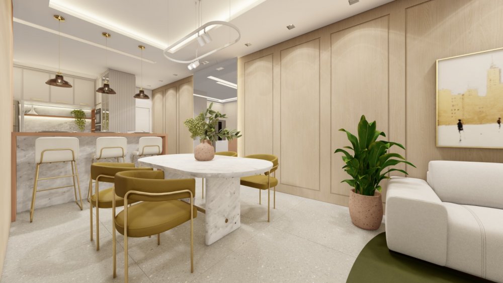 Já as opções com três suítes contam com salas de tv e jantar, cozinha, lavabo, área de serviço e sacada com churrasqueira.