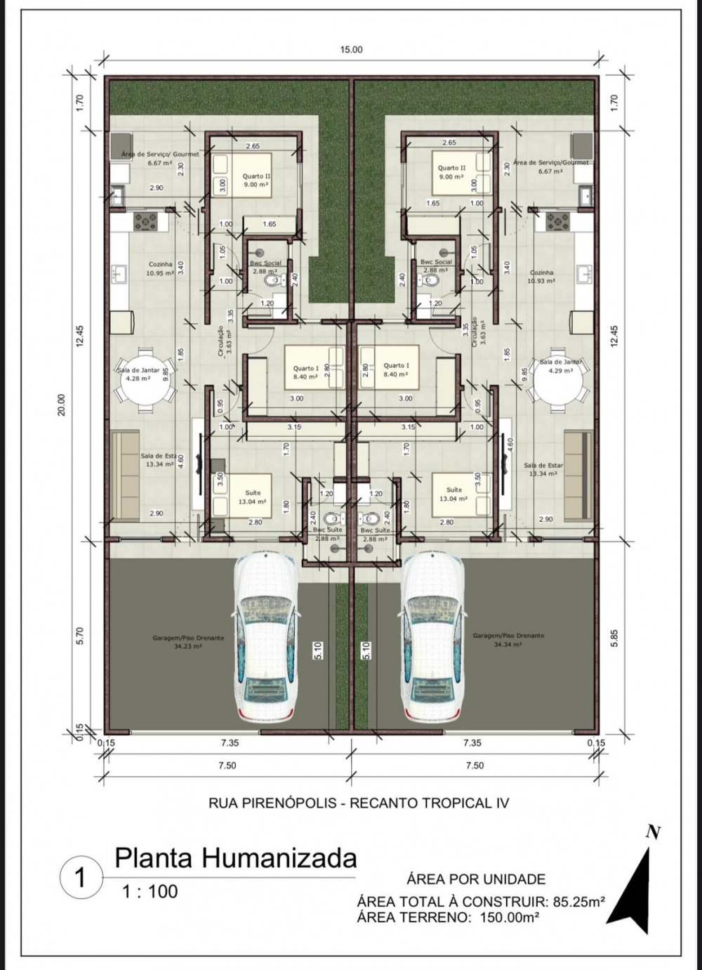 • Área Construída: 85,25 m²
