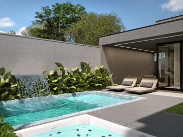Piscina com spa aquecido e paisagismo que valoriza o ambiente