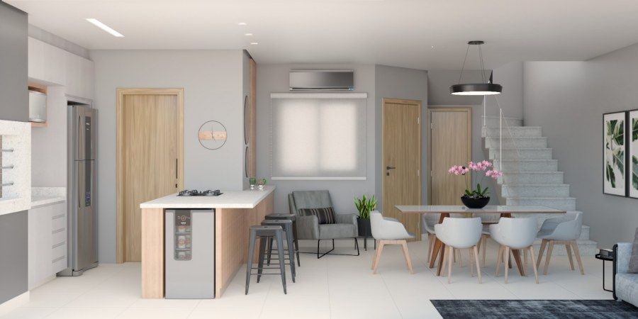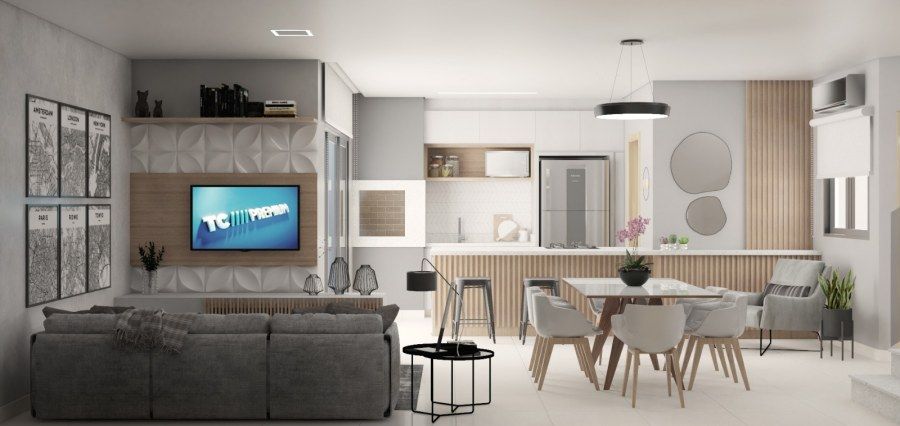 Cozinha e sala em conceito aberto